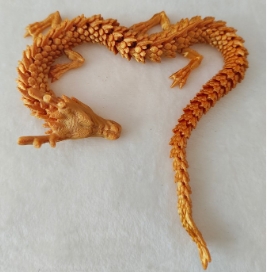 3D打印定制龍年擺件過程是,先在電腦上擺好造型,加上支撐。加好支撐的文件就可以上機(jī)打印了,選擇的是SLA工藝,白色樹脂光固化一體成型。光敏樹脂打印,精度高、成型快,易于模型后期打磨和上色。3D打印完成后經(jīng)過洗件、去支撐、打磨,龍的白模就做好了。接下來就可以對(duì)龍模型進(jìn)行上色處理了,處理完成就是成品了,下面看看3D打印龍擺件的成品吧。